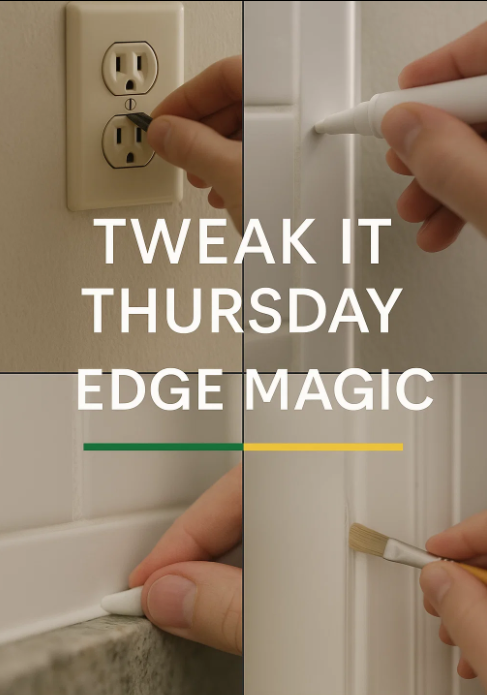 Five 10-minute edge fixes: outlet plates, grout pen, micro caulk line, baseboard scuff cleanup, door-frame touch-ups. Small edges = big wow in photos. Boost for the checklist—reply EDGE.