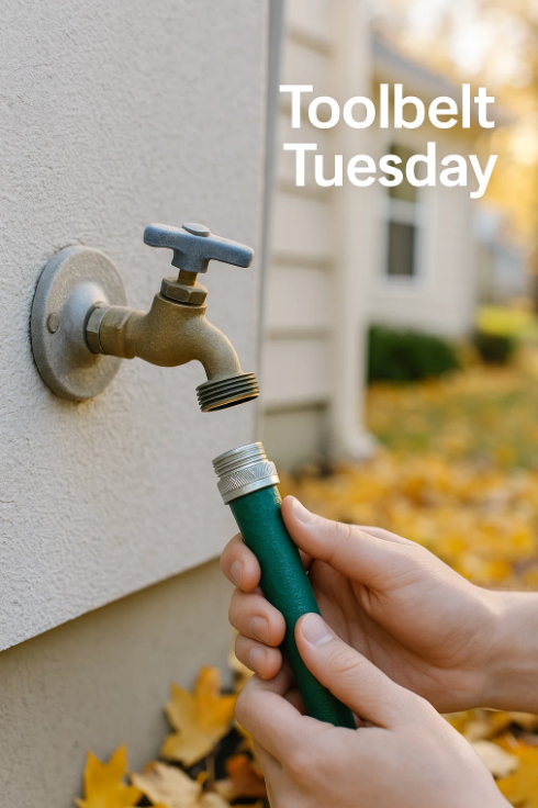 Toolbelt Tuesday: Disconnect hose → drain spigot → shut off inside (if you have one).
