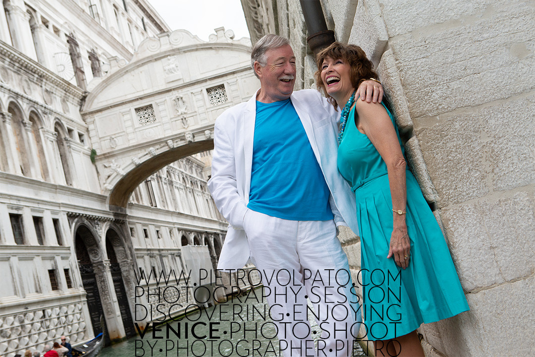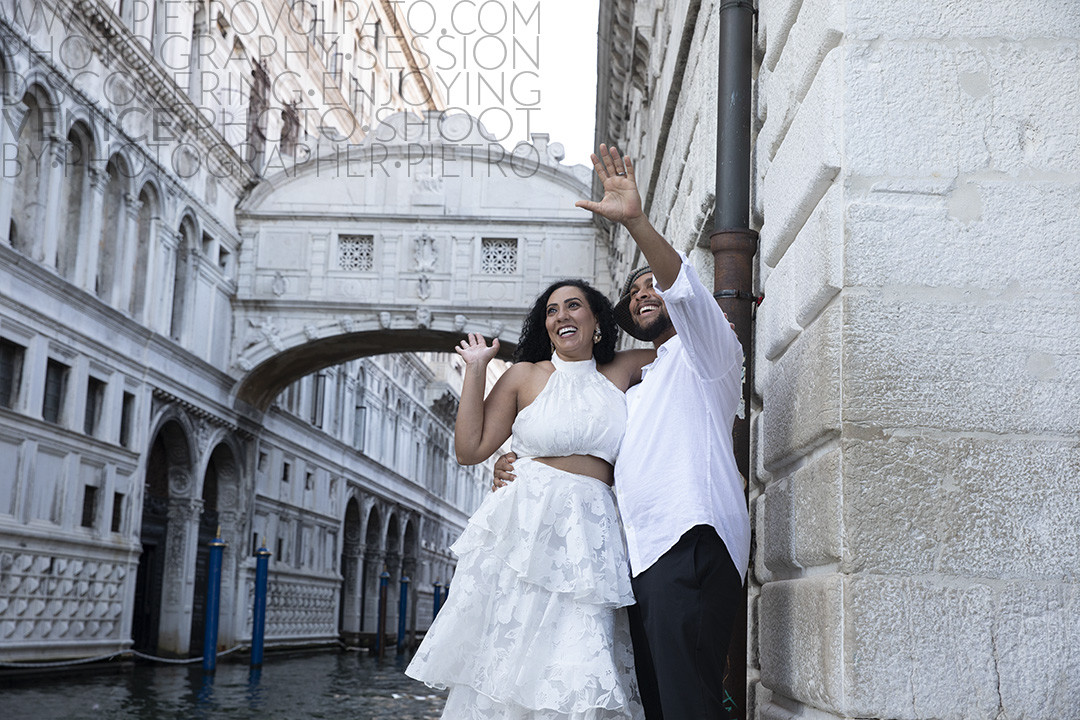 A very colorful and joyful moment for this couple, with the Bridge of Sighs in the background, obviously in Venice.