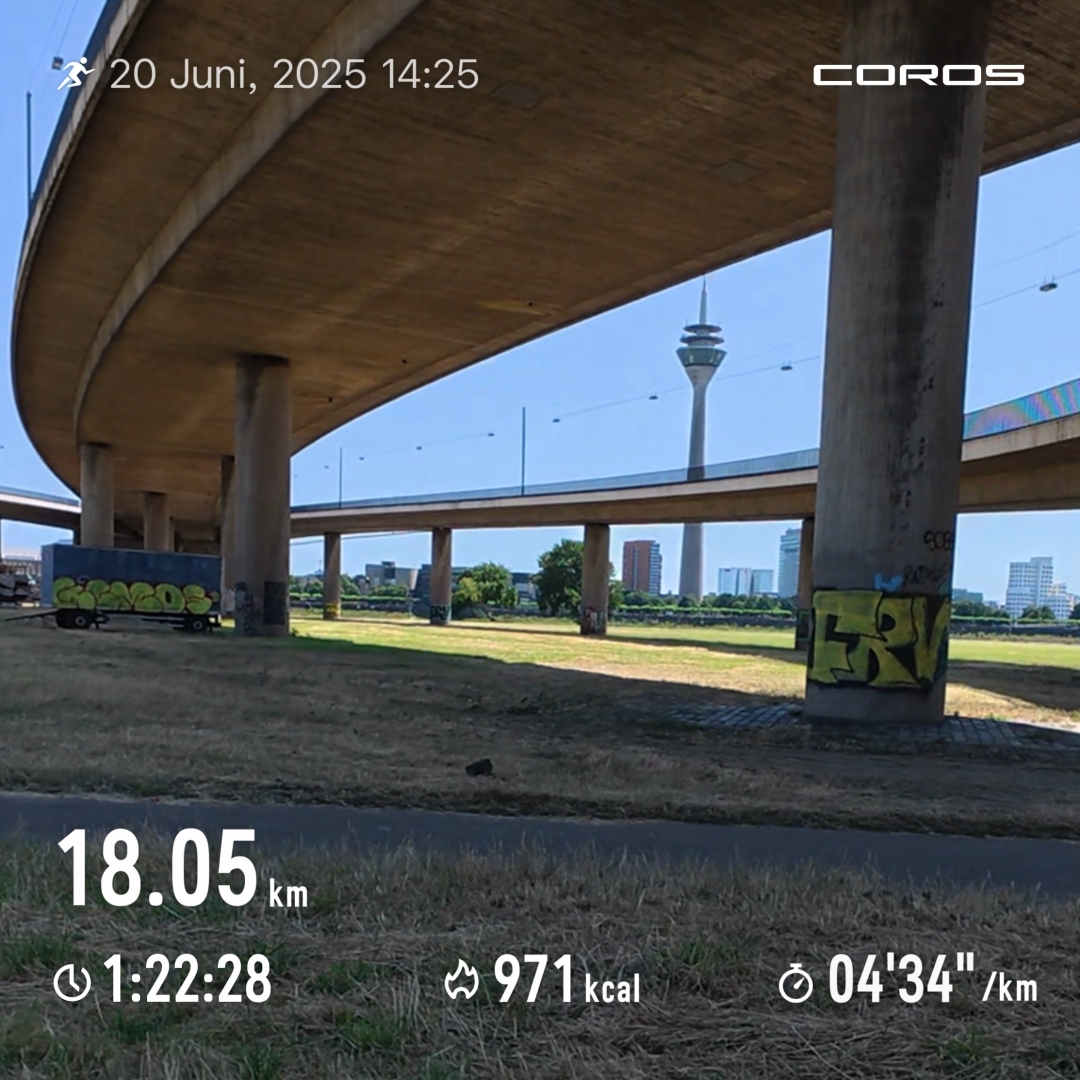 Heute (weil BrĂŒckentag-frei) gings in der prallen Mittagssonne bei 26°C seit langer Zeit mal wieder in Richtung Hafen-Neuss/Heerdt, bei dem Wetter muss man einfach "Am Hochofen" entlang laufen đŸ€Ł