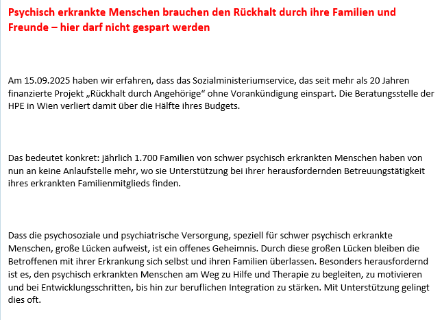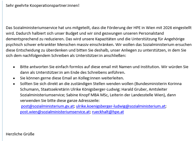 Wer unterstüzten möchte, schreibt an rueckhalt@hpe.at