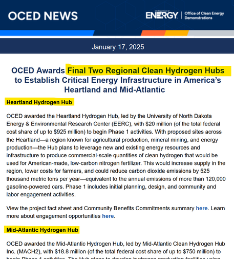 U.S. Department of Energy awards final 2 Hydrogen Hub contracts: Heartland Hydrogen Hub #HH2H & Mid-Atlantic Hydrogen Hub #MACH2.
