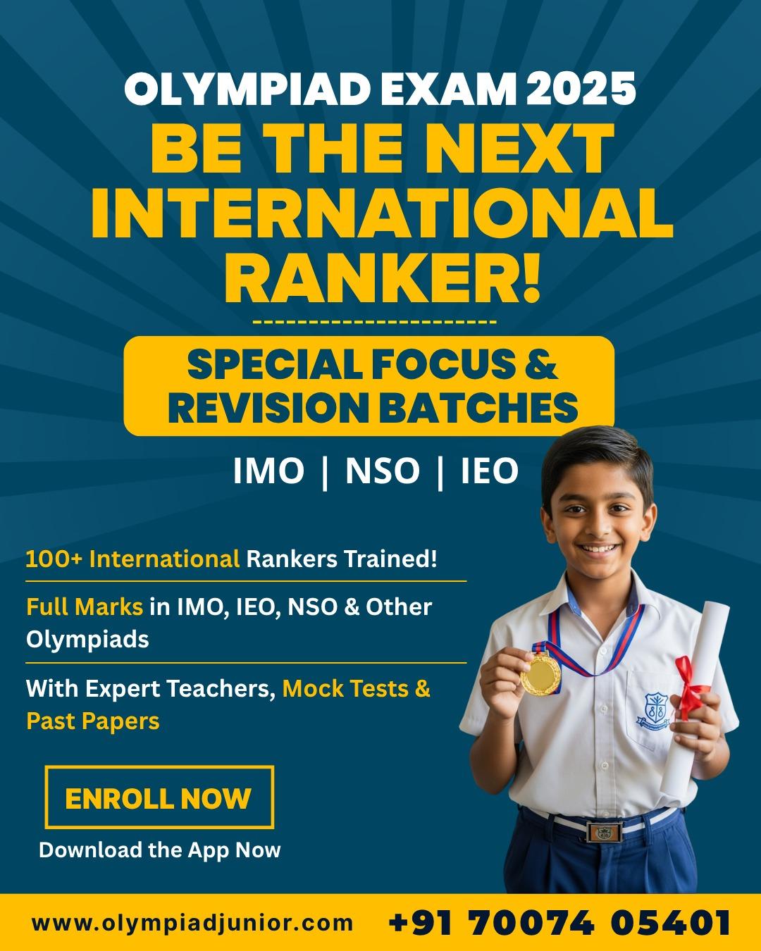 Join Olympiad Junior’s 2025 Revision Batches for IMO, NSO & IEO and get expert training, mock tests, and past papers!