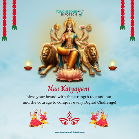 Day 6 of Navratri honors Maa Katyayani – the goddess of courage and strength.✨ May her blessings empower you to conquer all challenges! – Touchstone Infotech