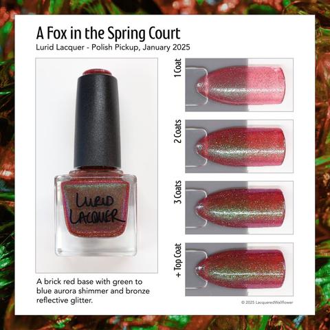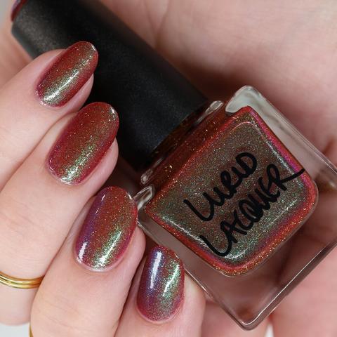 💜 It’s a Takedown - A sheer magenta base with different sized blue to purple shimmers.