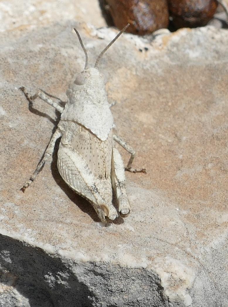 Tja, die blauen Flügel sind leider angelegt, aber dafür ist die kleine Schrecke perfekt an ihren felsigen Untergrund angepasst.