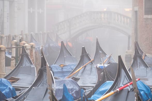 Gondola resting on an early morning misty day in Venice!