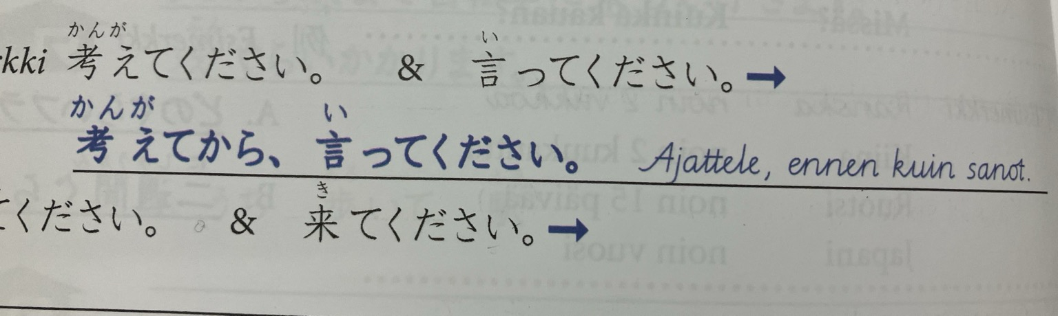 Japanin tunnilla oli harjoitustehtävä, joka meni heti esimerkkilauseessa niin syvälliseksi että kauan meni päästä eteenpäin kun juutuin (kuinkas muuten) ajattelemaan.