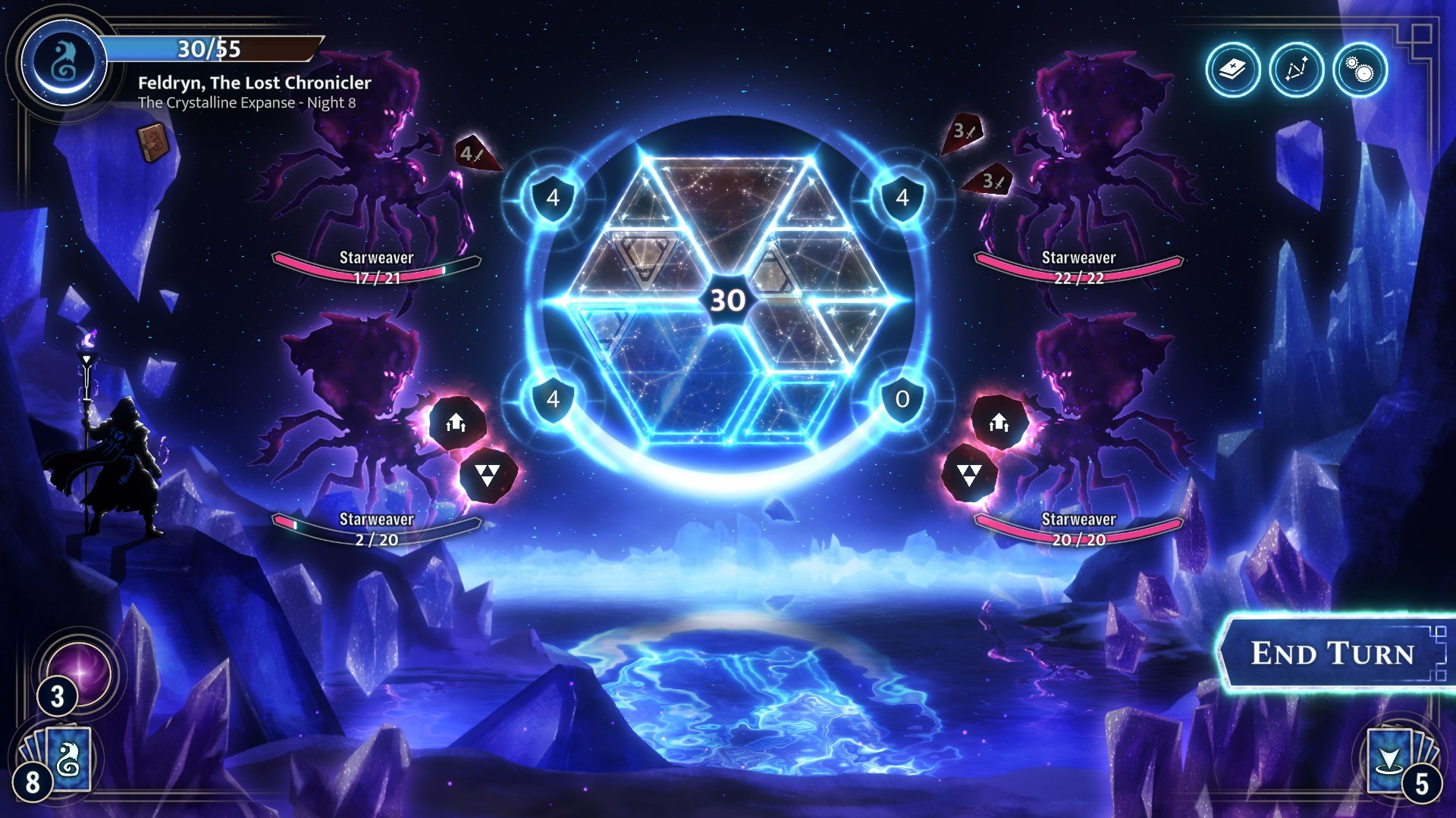 Début du premier tour de cette partie, les planètes s'alignent.