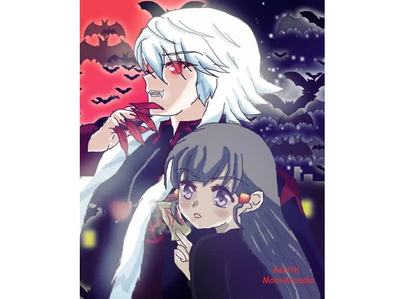 Aerith the vampire princess @_MoonArcadia_ Finally finished it 🥰 Drawing & edit by me! #Journeytoseekpastlifes #journeytoseekpastreincarnations #Journeytothepast #thanatos #ThanatosAaronEisdowei #yeyin #fanart #myfanart #vampire