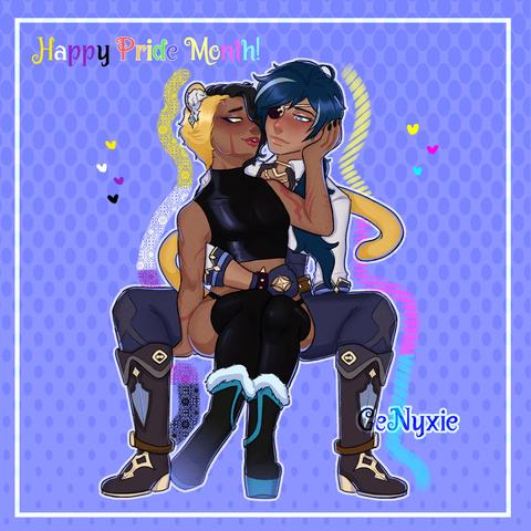 An old piece with my genshin oc and favourite husbando kaeya