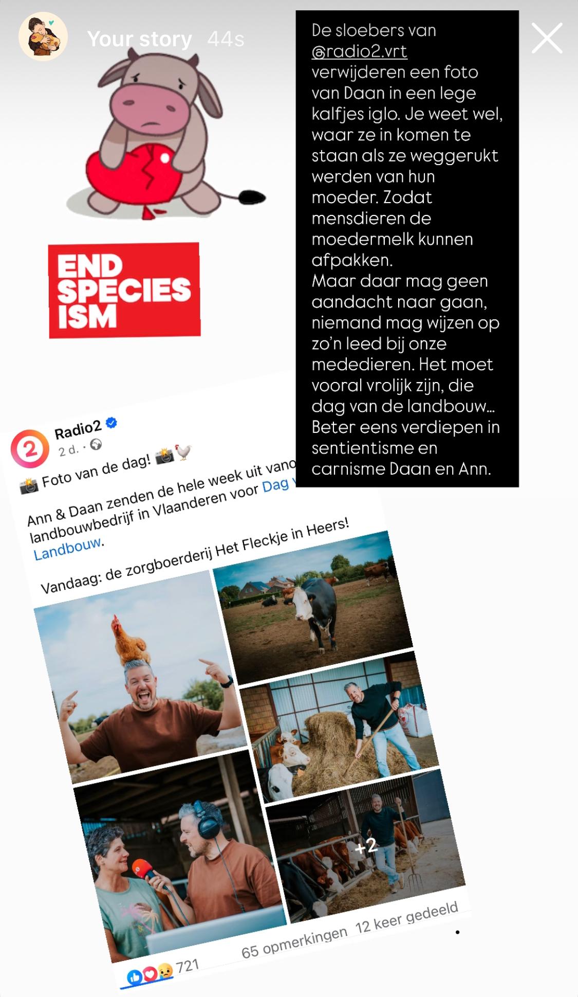 @animalrights.nl of Varkens in Nood. Nieuwe regel twee: bij items over mest, graag beelden van dieren in mestkelders, niet van gezonde grazers in lenteweides. Het is 2025. De uitbuiting van dieren romantiseren kan echt niet meer, niet door kritische media. We hebben daar nu politici voor.”