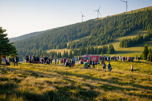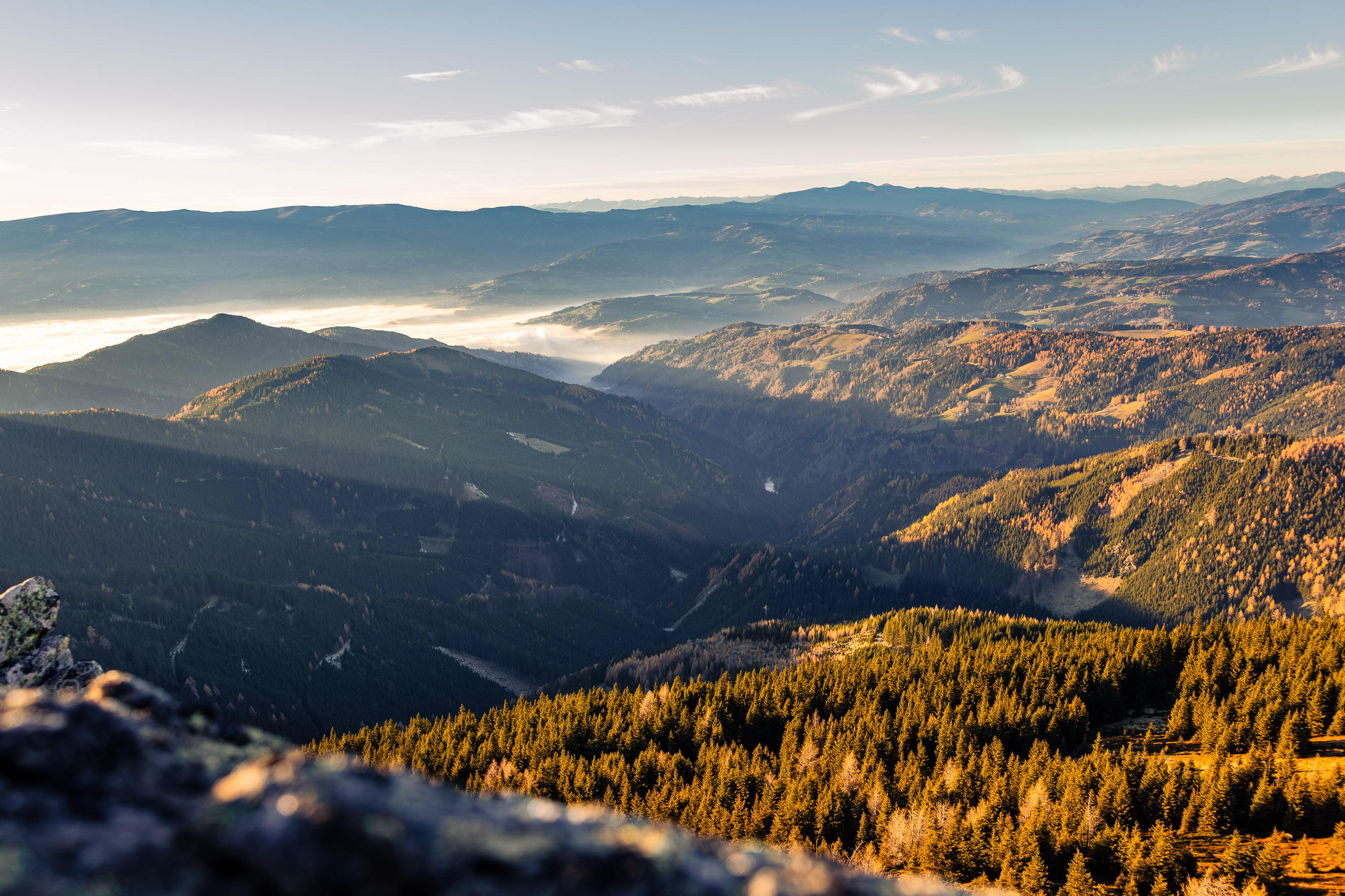 Der bewaldete Wolscheneck im Vordergrund und die Koralpe mit dem Großen Speikkogel im Hintergrund.