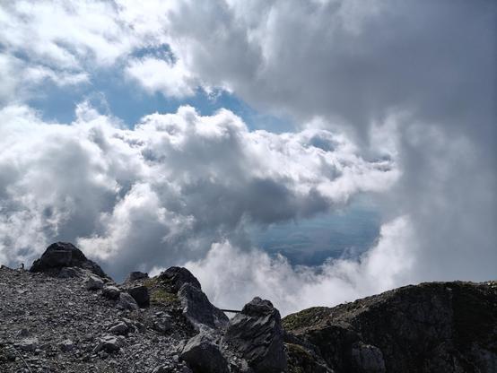 Top was completely enshrouded in the cloud, but I managed to get the one picture. Worst shape I've ever been in my life, but just a feeling of happiness in my heart (and no other feeling that should be there).