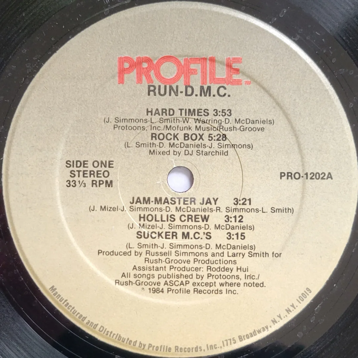 Run D.M.C.‘s debut album on Profile, a NY area hip-hop label that was distributed by Arista, who would later reissue it. It was produced by Russell SImmons and Larry Smith, and recorded at Greene St. Recording in Soho.