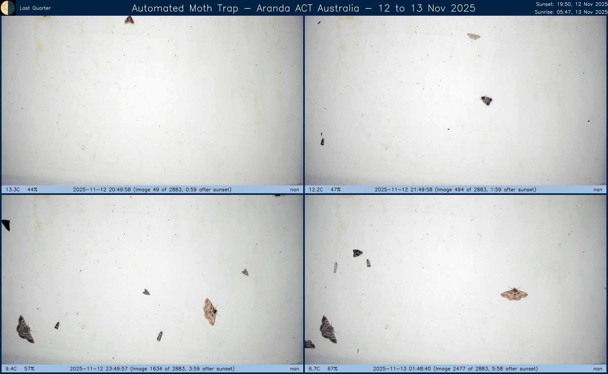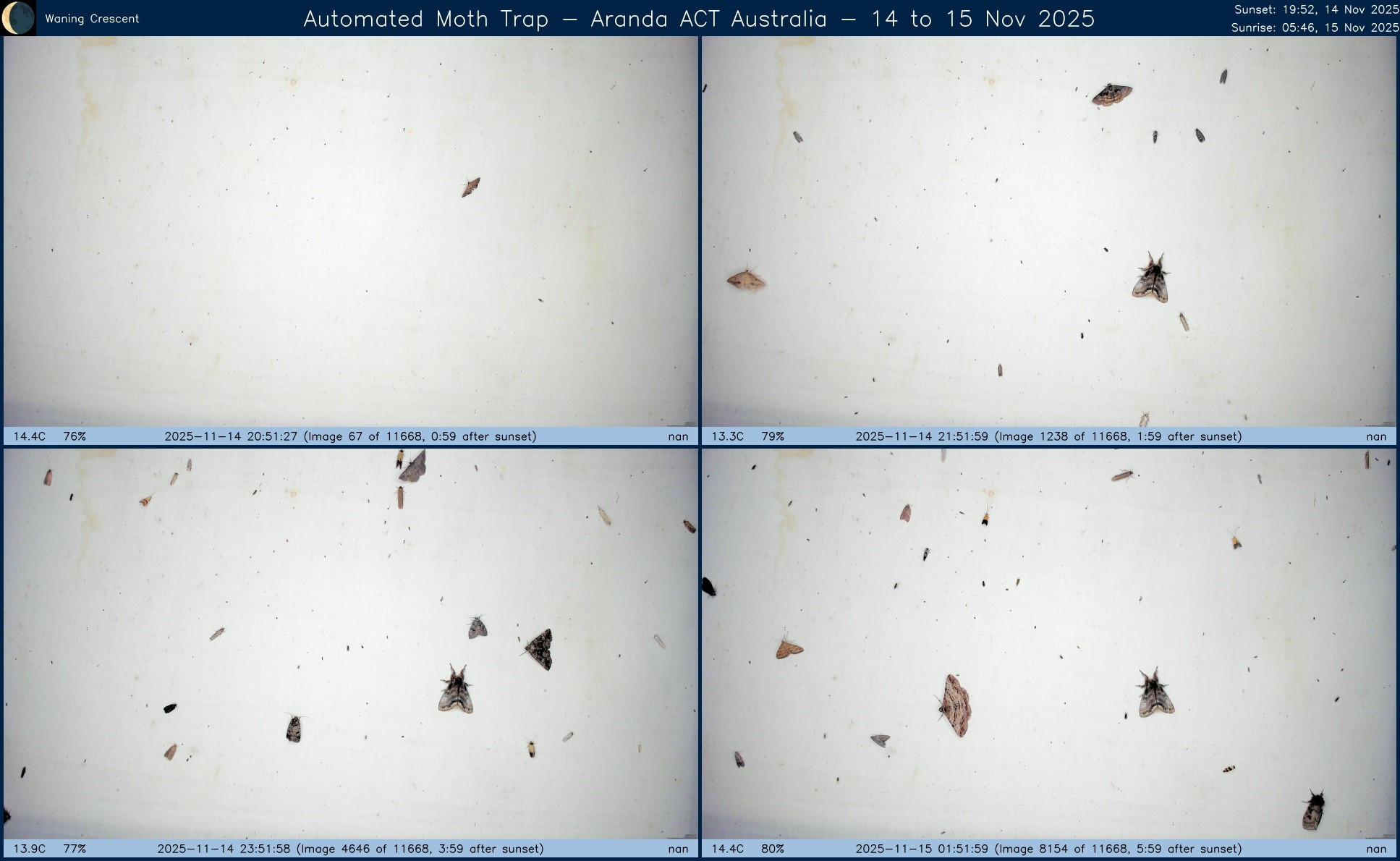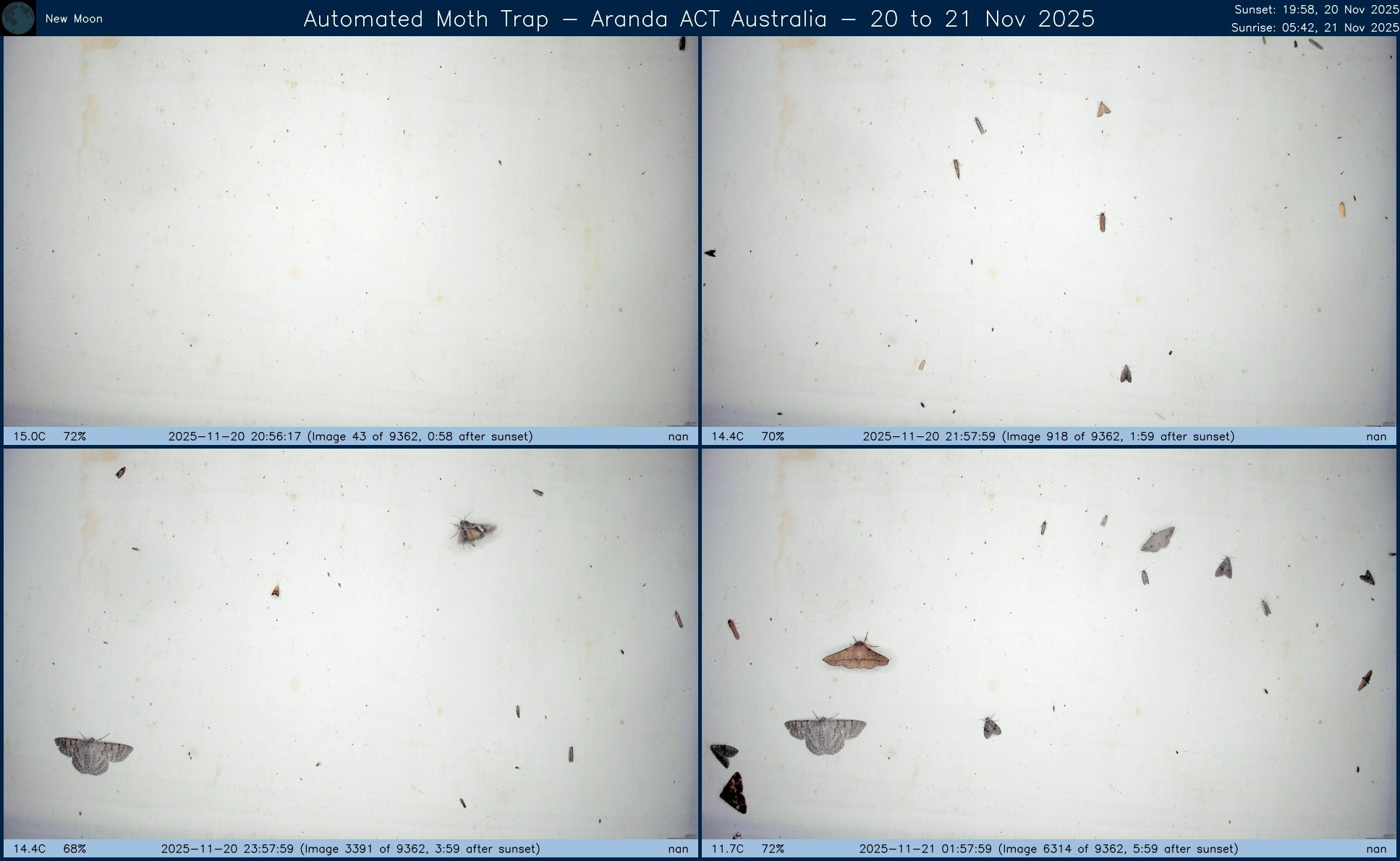 Composite image from #AutomatedMothTrap operated in #Aranda, #ACT, #Australia over night of 26 to 27 Nov 2025.
