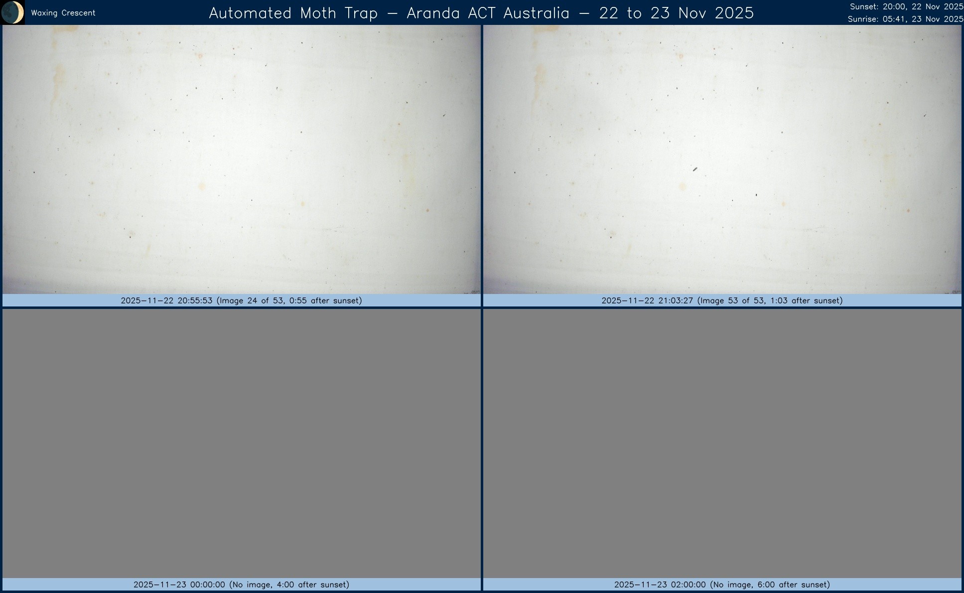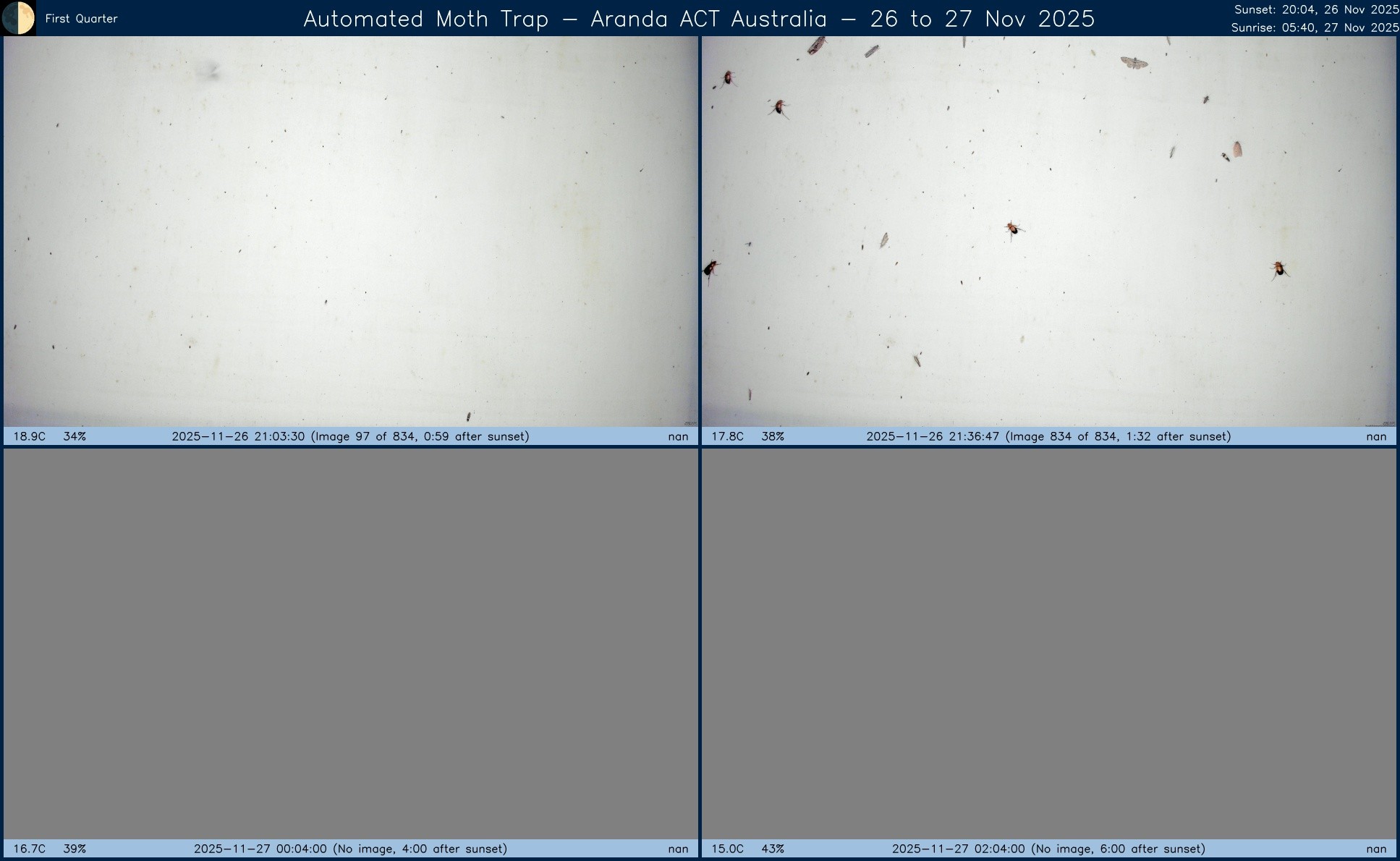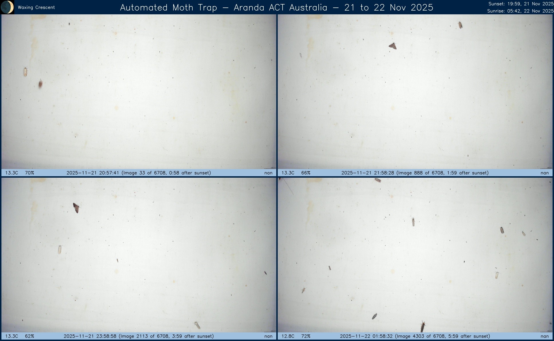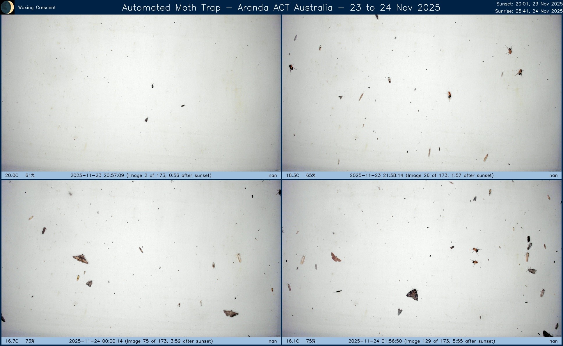 Composite image from #AutomatedMothTrap operated in #Aranda, #ACT, #Australia over night of 26 to 27 Nov 2025.