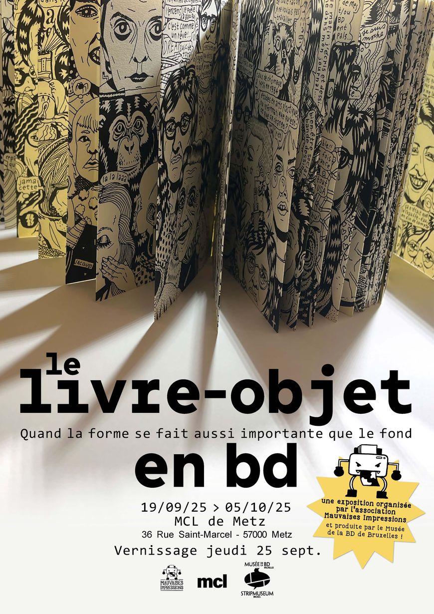 « Le Livre Objet en BD » : une exposition organisée par l’association Mauvaises Impressions à la Mcl-Metz du 19 septembre au 5 octobre 2025 (vernissage le jeudi 25 septembre 2025 à 18h30).