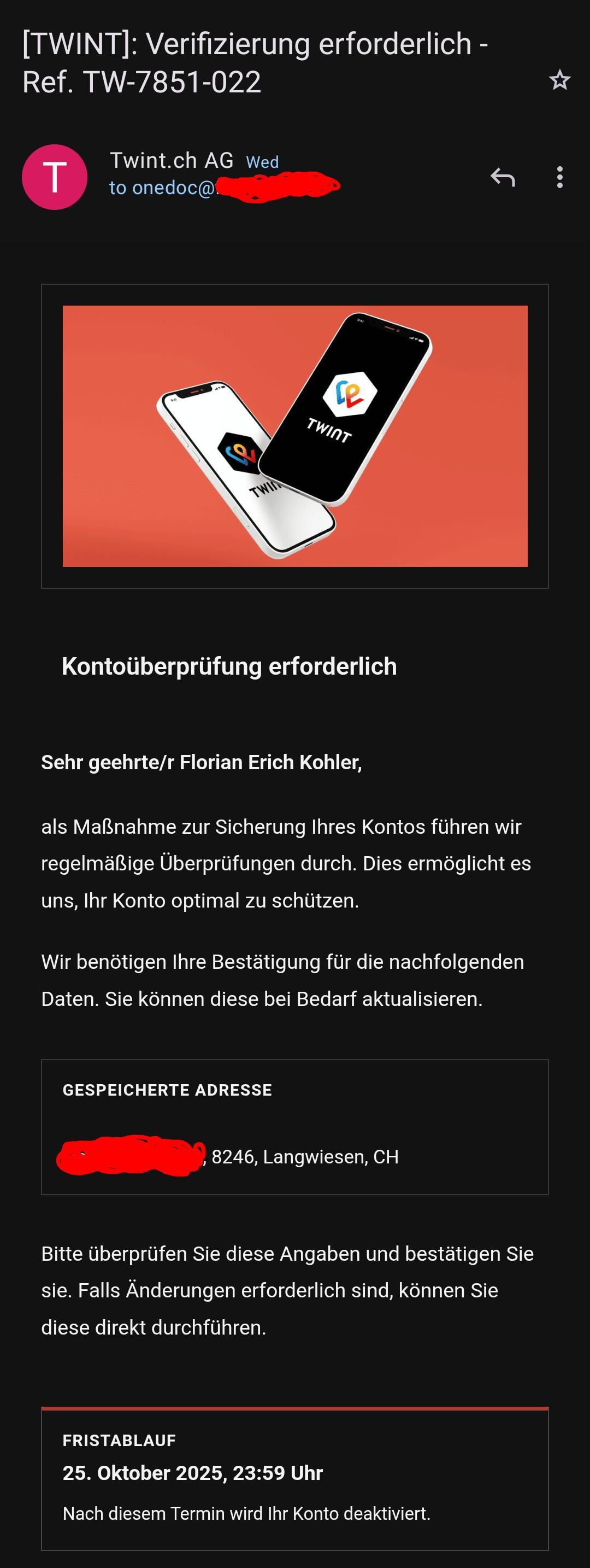 ![TWINT]: Verifizierung erforderlich - Ref. TW-7851-022