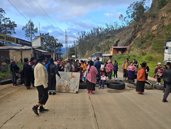 #Ecuador🔴La vía #Loja - #Cuenca volvió a ser tomada por los habitantes de #Saraguro, en rechazo al paquetazo de #Noboa. La medida se cumple en el sector Sinincapac