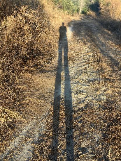 Having some fun on the evening dog walk with long shadows created by the setting sun.