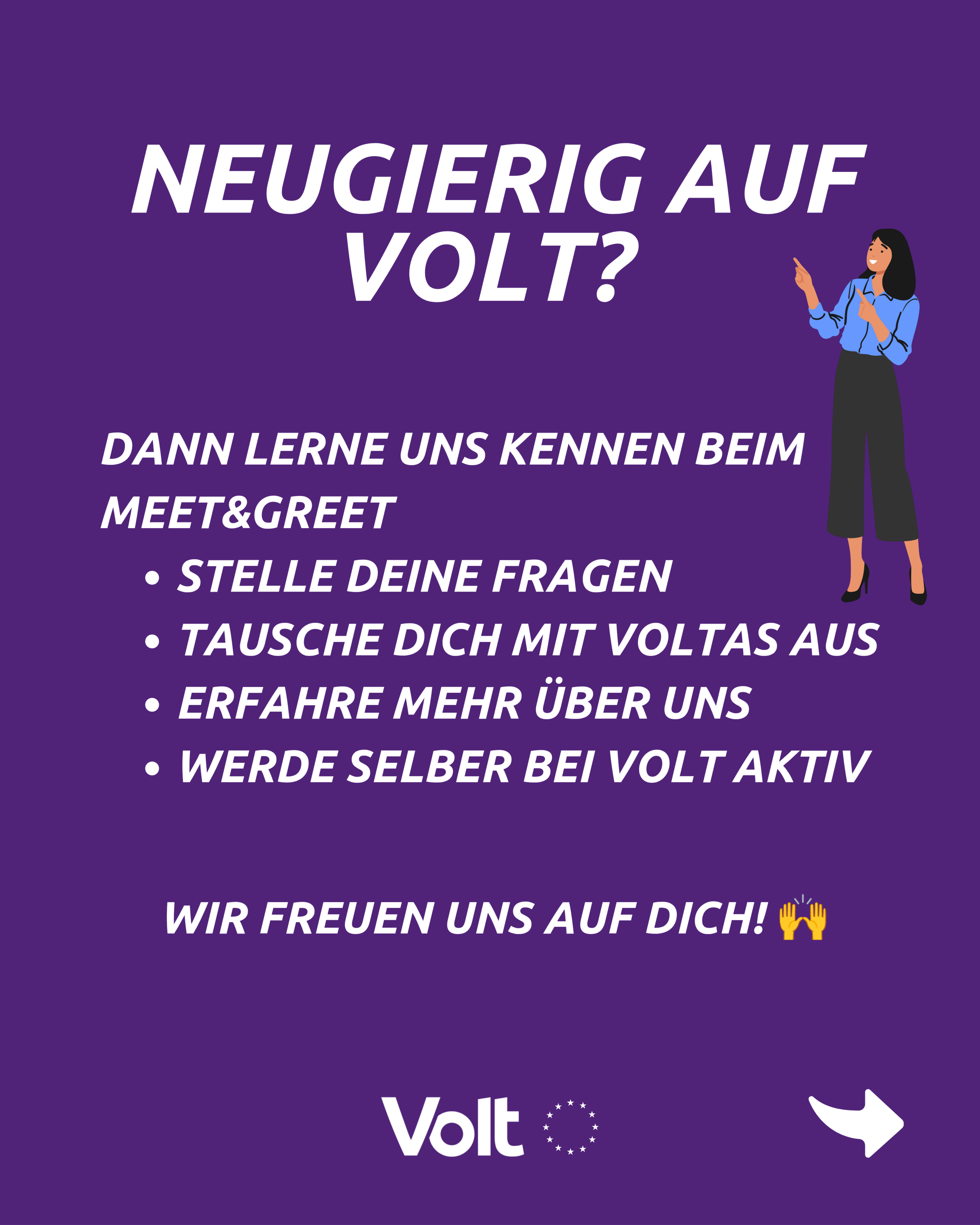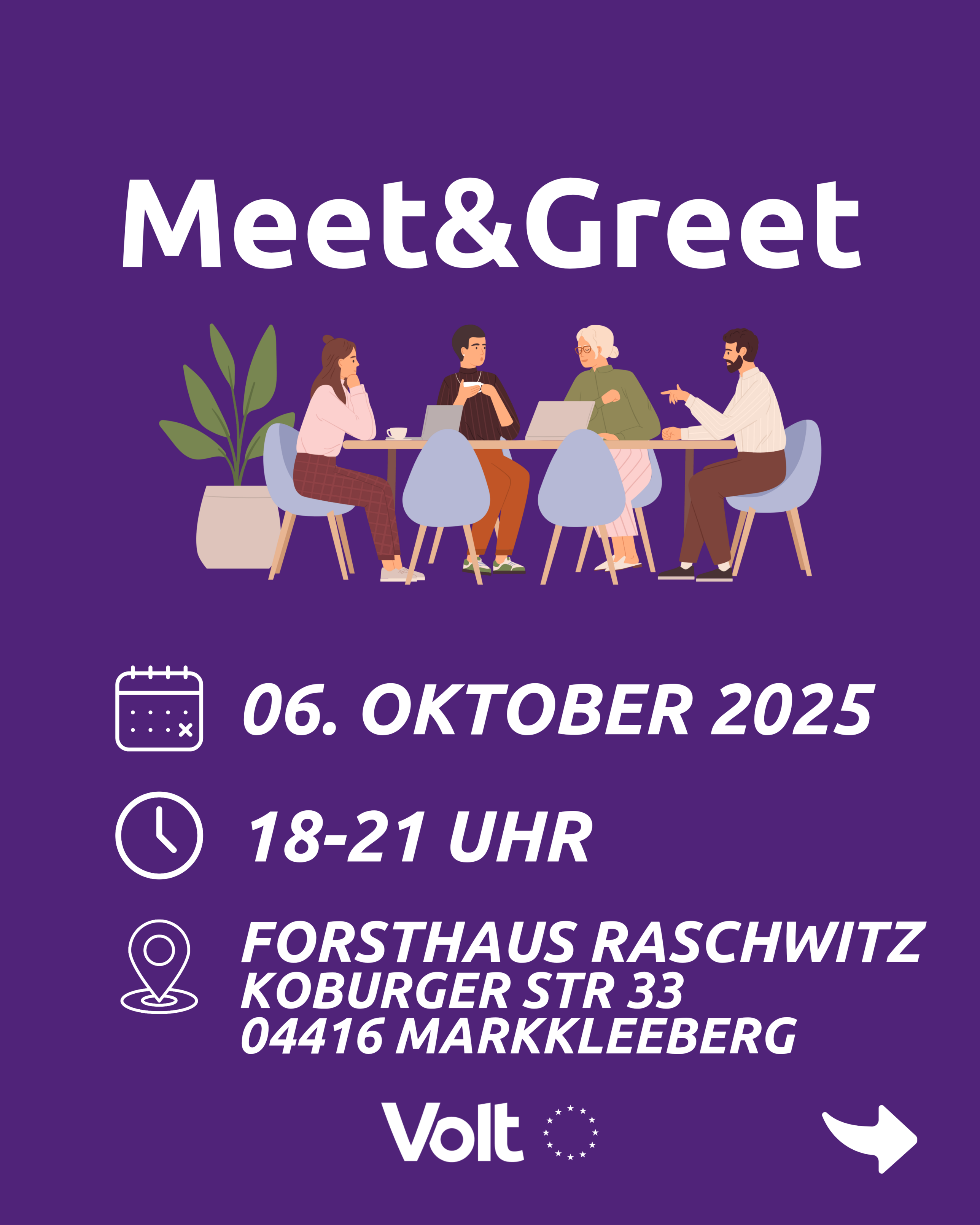 Am 6.10.2025 von 18-21 Uhr könnt ihr zum Meet und Greet vorbeikommen, um Volt mal im analogen Leben zu erleben im:
