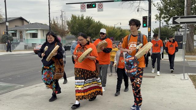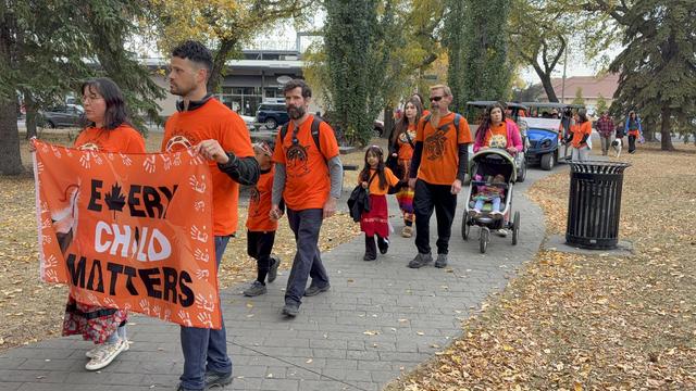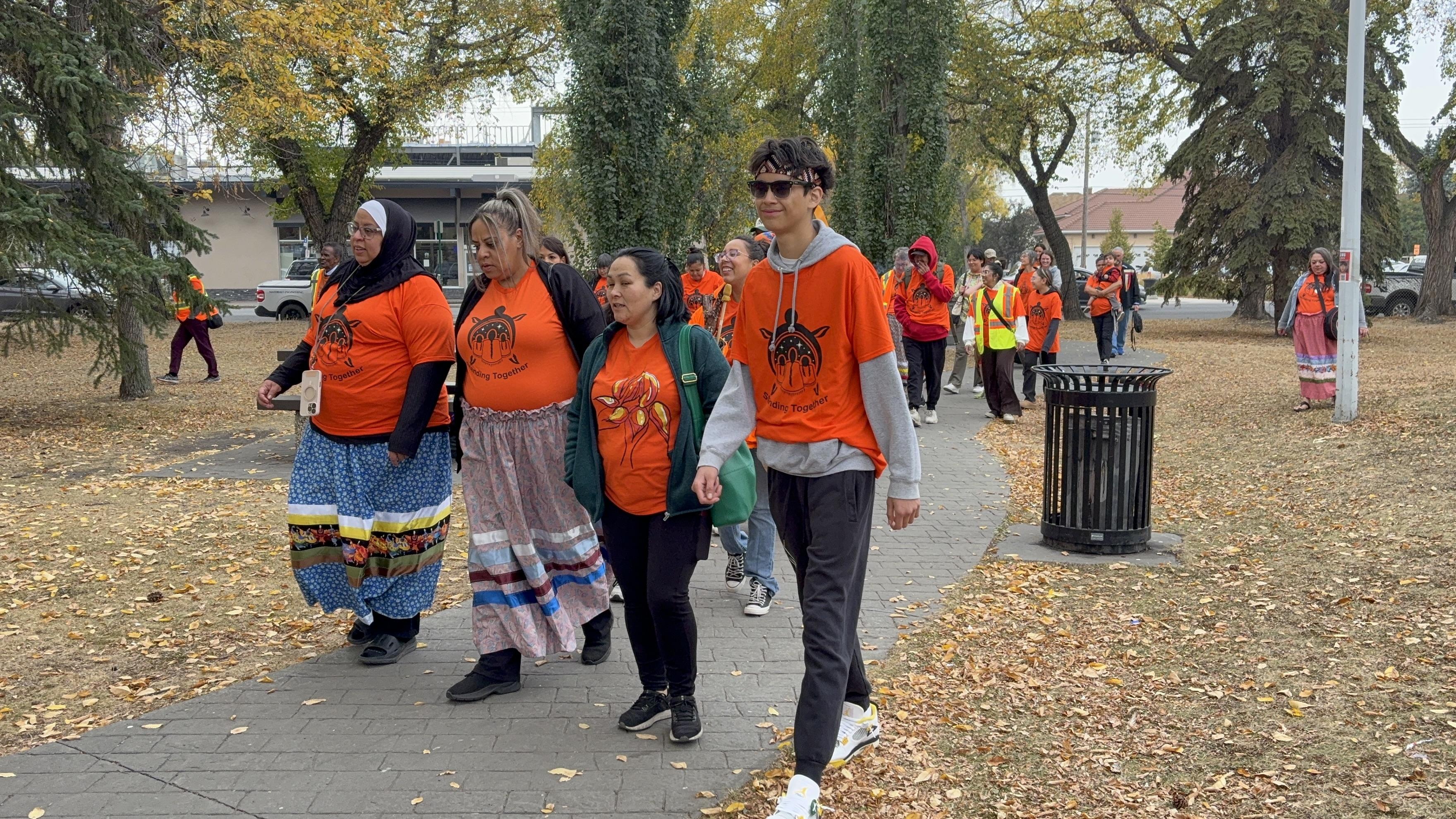 A community walk through McCauley to honour the National Day for Truth and Reconciliation (also known as Orange Shirt Day).