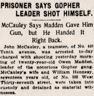 #OTD (Nov 07) in 1912, John #McCauley of #Manhattan Hudson Dusters is arrested for the shooting of #Gophers gang leader Owen #Madden.