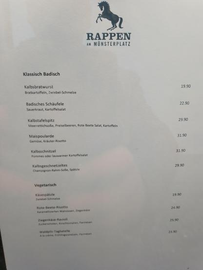 Nur ein kleiner Teil einer Speisekarte