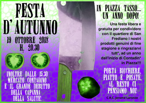 Venerdì in piazza Tasso a Firenze Festa Contadina d'Autunno! cena gratuita e convivialità in una delle piazze storiche di San Frediano, spargete la voce.
