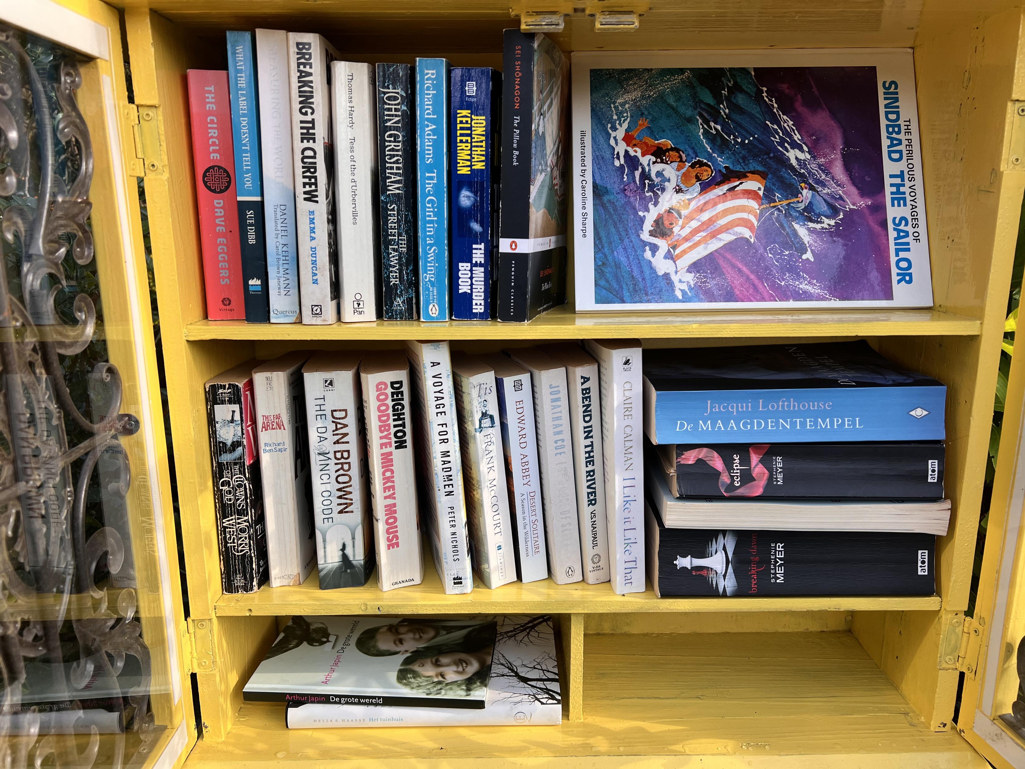 Ik was nog maar net binnen na het plaatsen van de eerste lading boeken, of een gezinnetje haalde er al twee boeken uit. Zoonlief wilde per se zijn nieuwste aanwinst vasthouden terwijl hij op zijn fietsje zat π«