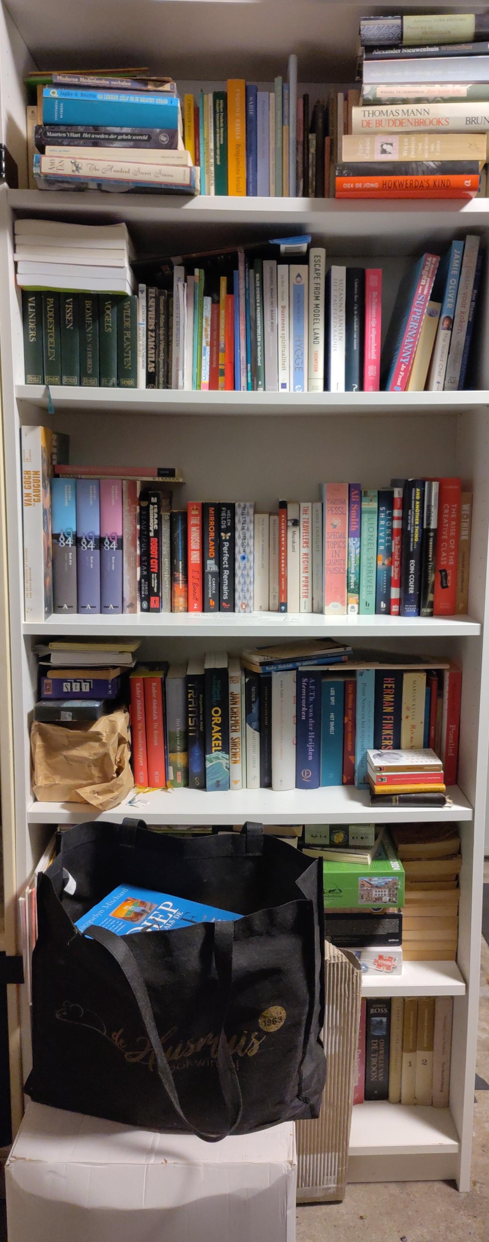 Deze rommelige boekenkast staat naast een covid-priklocatie #minibiebmaandag