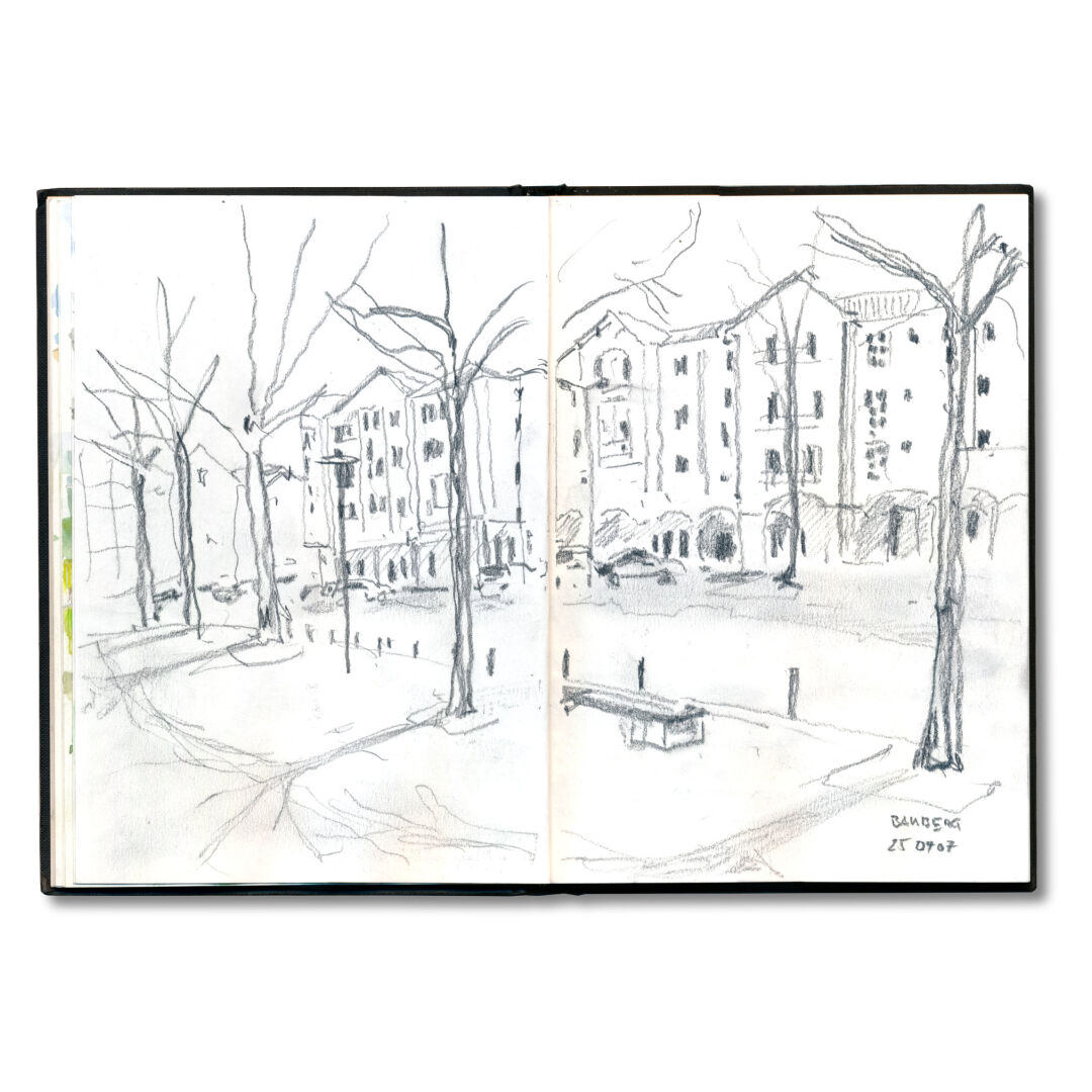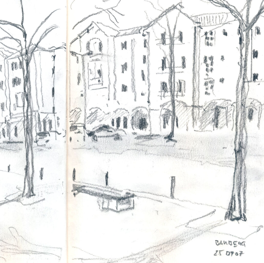 Eine kurze Bleistiftskizze in Bamberg, Skizzenbuch Fabriano A5 hoch