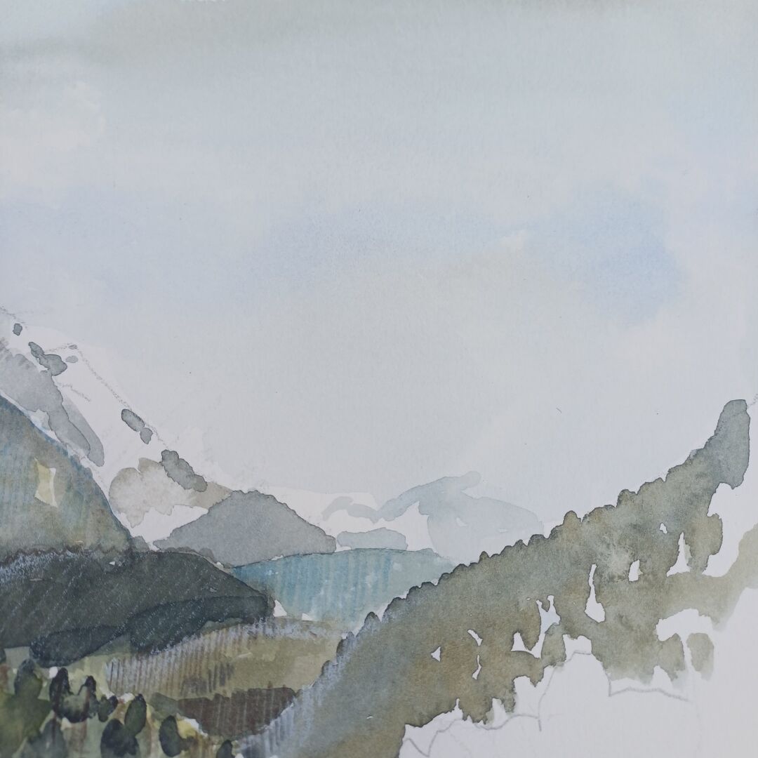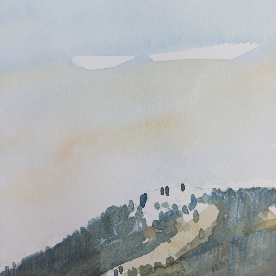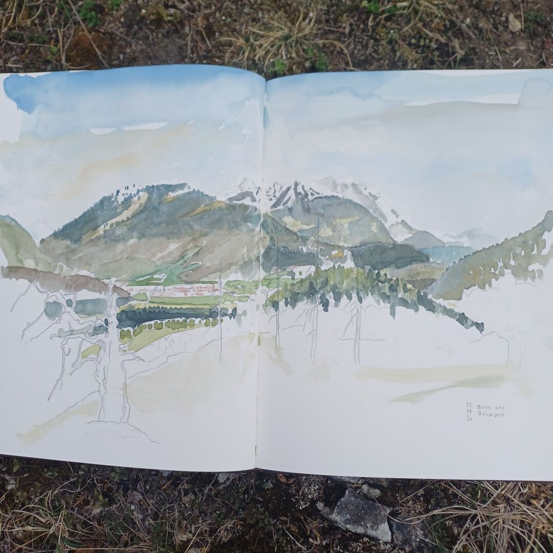 Schnelle expressive Aquarellskizze bei einer kleinen Wanderung.