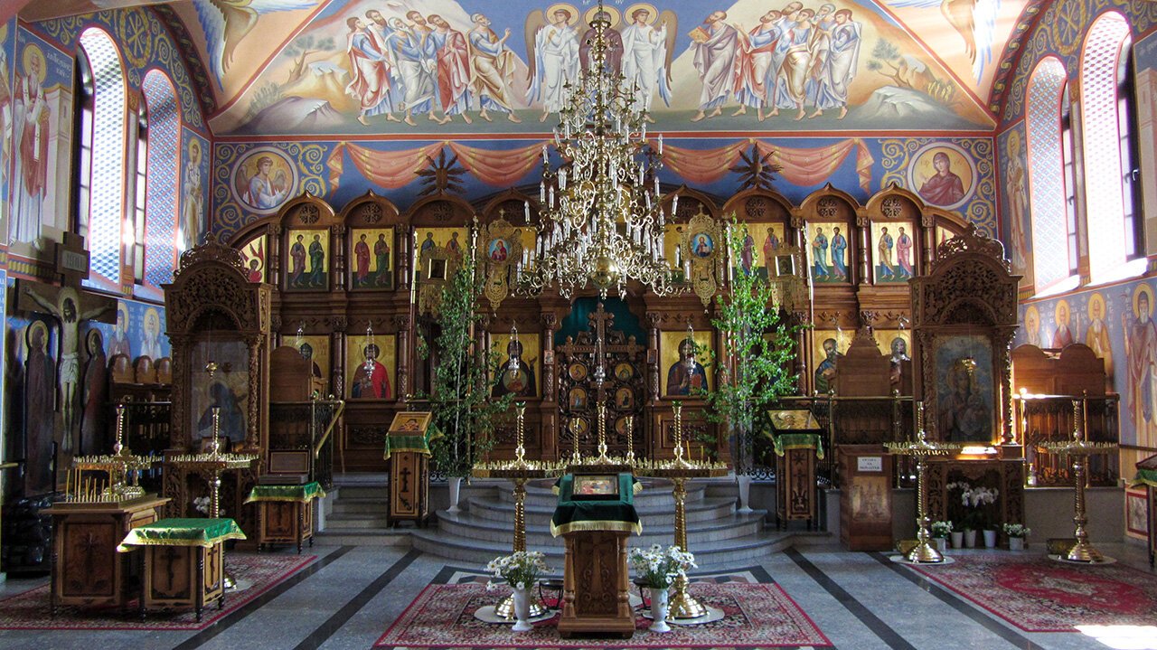 This is an oriented temple, rectangular in shape with a three-part structure typical of Orthodox churches.