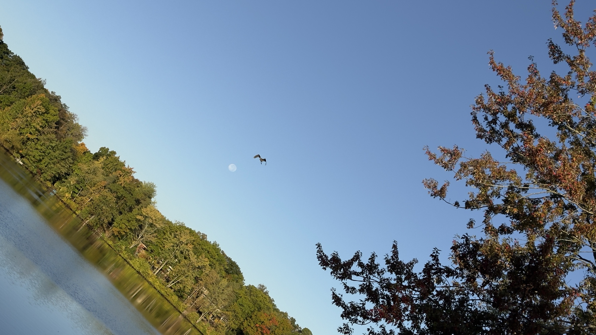 Moon set over the lake got photo bombed by ‘Earl’ one of our local great blue heron. #birds #nature #harvestmoon #moon #moonset #michigan #westbloofieldlake #birdsofbluesky #blueheron