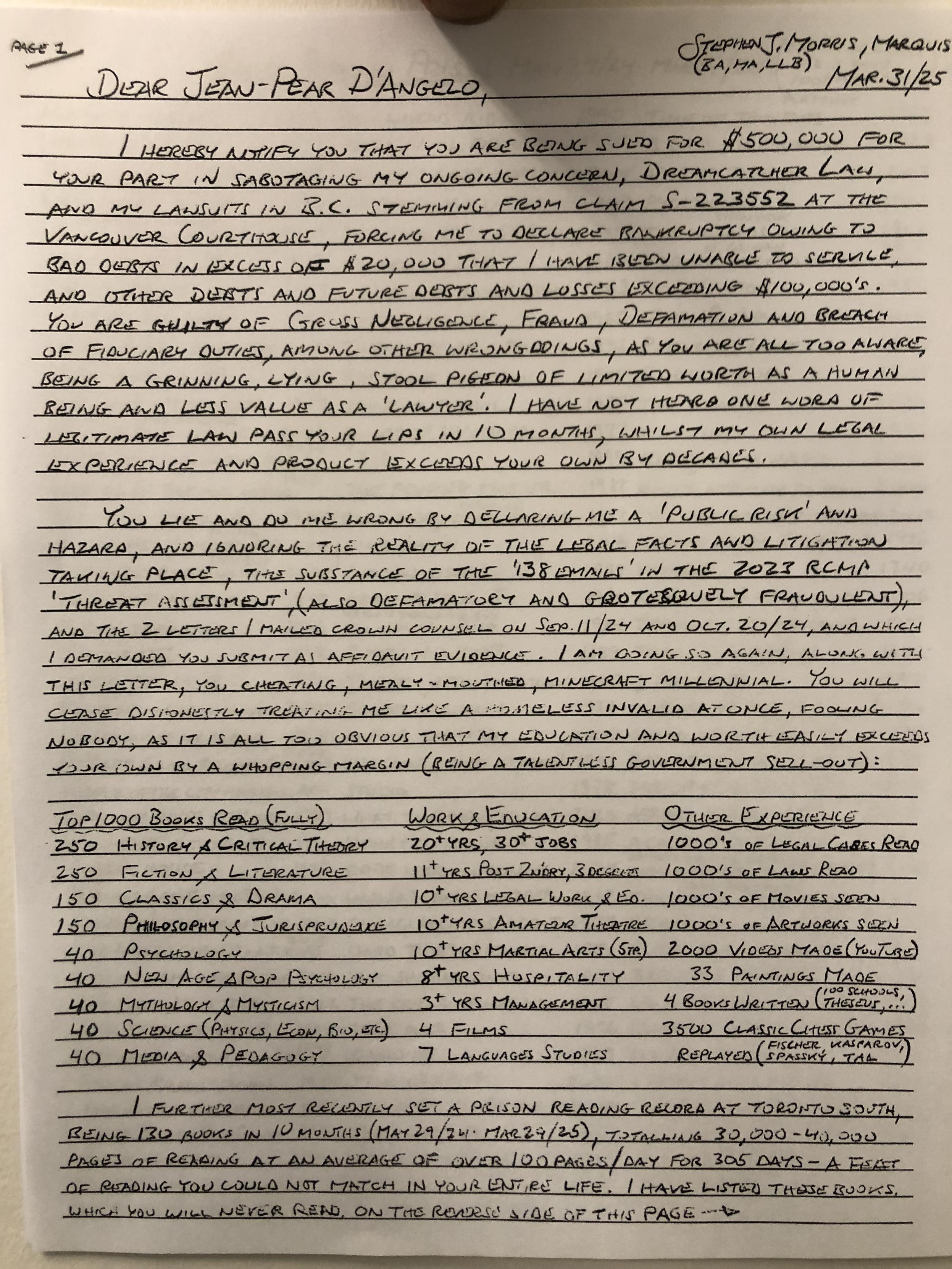 LETTER TO #frankbernhardt Nov. 7