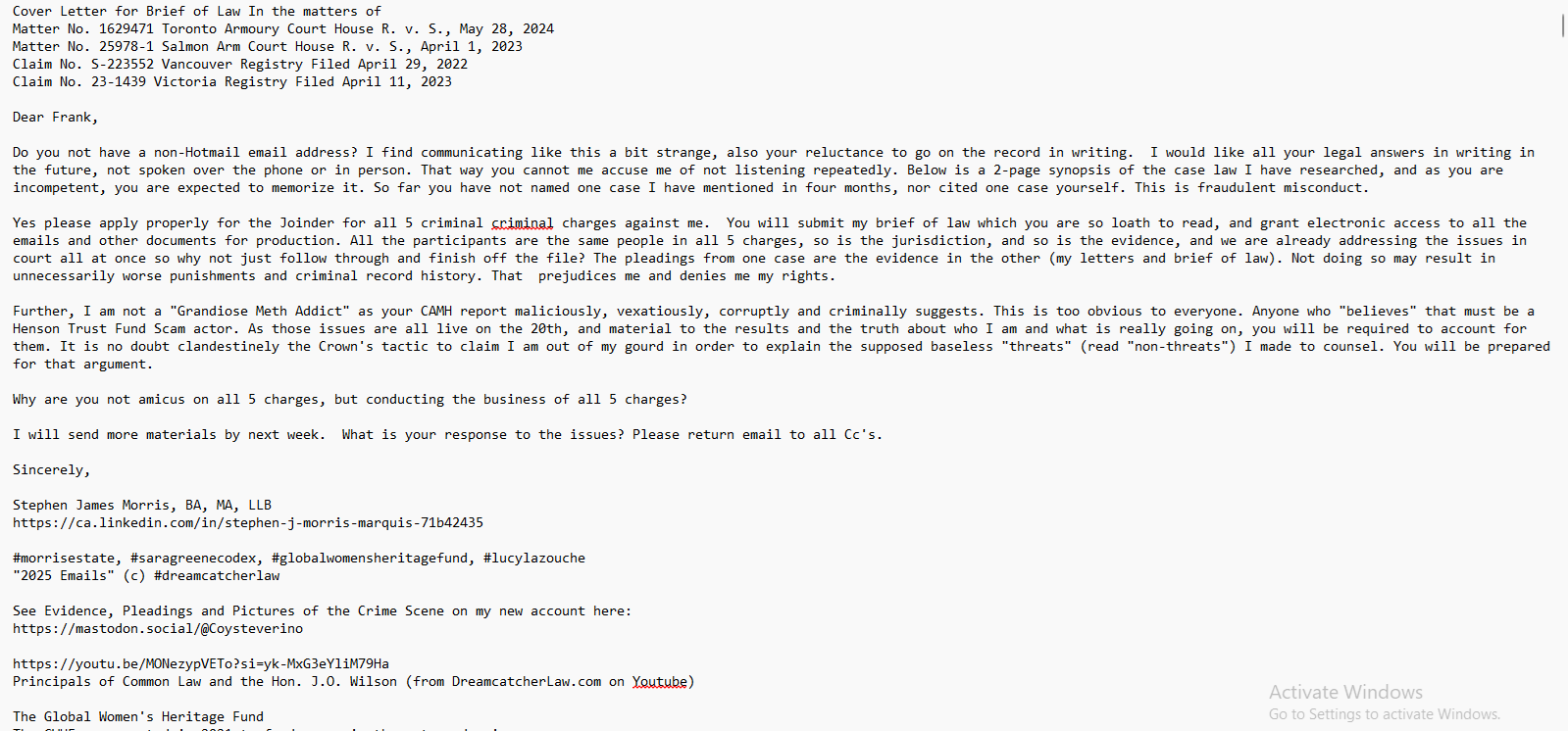 “GRANDIOSE DELUSIONAL METH ADDICT” is a heinous lie being used to keep my evidence out of court. That is why I publish it here.
