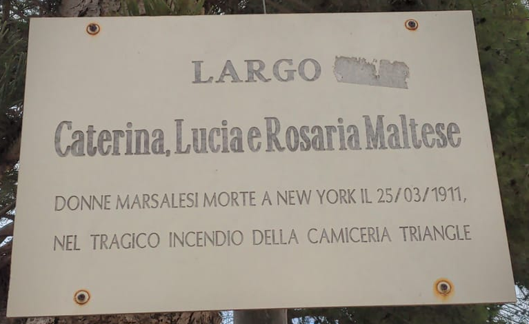 A Marsala, nei giardini pubblici Villa Cavallotti una dedica a tre marsalesi morte sul lavoro a New York (su 146 morti, quasi tutte donne)