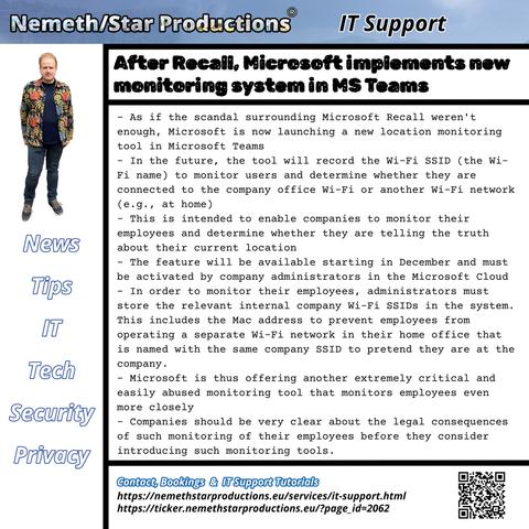 After Recall, Microsoft implements new monitoring system in MS Teams #Microsoft #Teams #MSTeams #Recall #ITSupport #Tech #surveillance #Work #HomeOffice