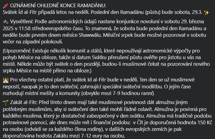 📌 OZNÁMENÍ OHLEDNĚ KONCE RAMADÁNU: