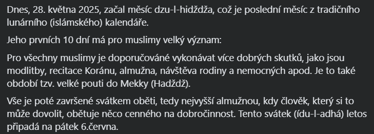 Dnes začal měsíc dzu-l-hidždža,což je poslední měsíc z tradičního lunárního (islámského) kalendáře. Přejeme všem krásné a požehnané dny tohoto období! 🤍