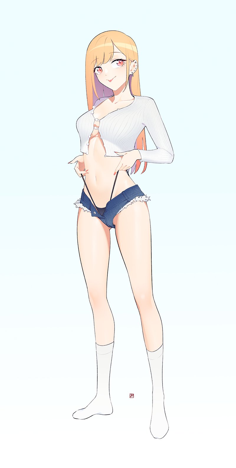 #1girl #absurdres #aqua_necktie #bag #black_choker #blonde_hair #blue_bag #bracelet #breasts #choker #cleavage #collarbone #commentary #ear_piercing #feet_out_of_frame #from_above #gyaru #hand_in_own_hair #highres #holding #holding_bag #jewelry #kitagawa_marin #long_hair #looking_at_viewer #medium_breasts #nail_polish #necktie #open_mouth #piercing #pink_nails #plaid_clothes #plaid_skirt #red_eyes #school_bag #school_uniform #shirt #simple_background #skirt #smile #solo #sono_bisque_doll_wa_koi_wo_suru #standing #suprii #white_shirt https://danbooru.donmai.us/posts/5139845