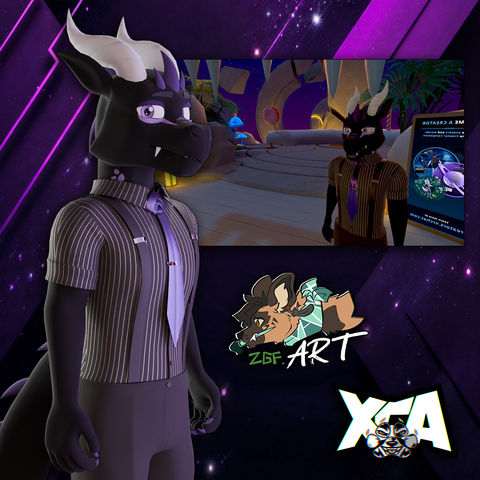 #furry #furryart #ZGFArt #XCA #dragon #Talderius #blackscales #male #horn #vrchat #vrchatmodel #3dmodeling #model #purpleeyes #purplemarkings #tie #necktie #dressshirt #slacks #2024