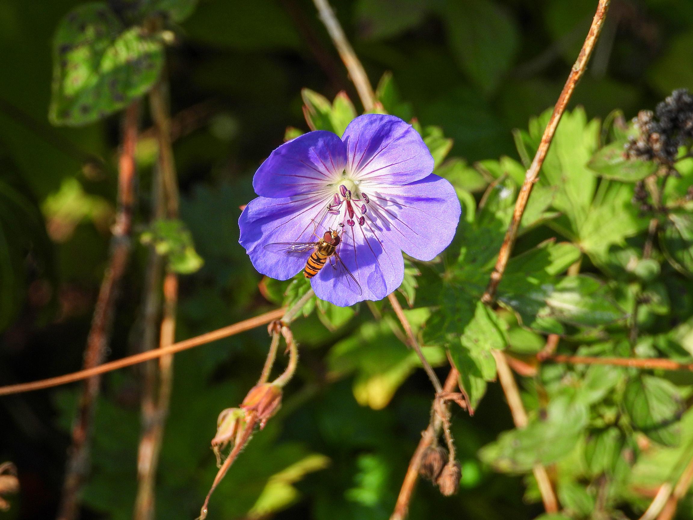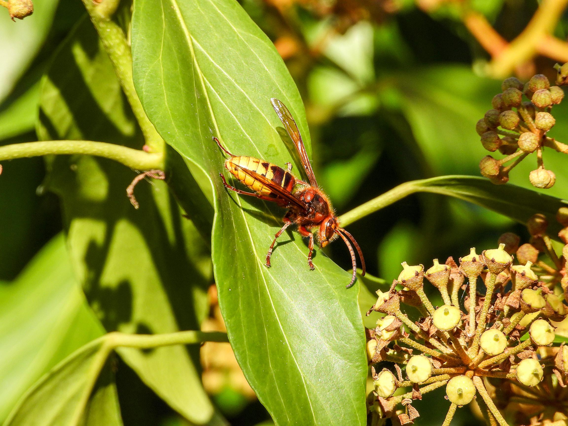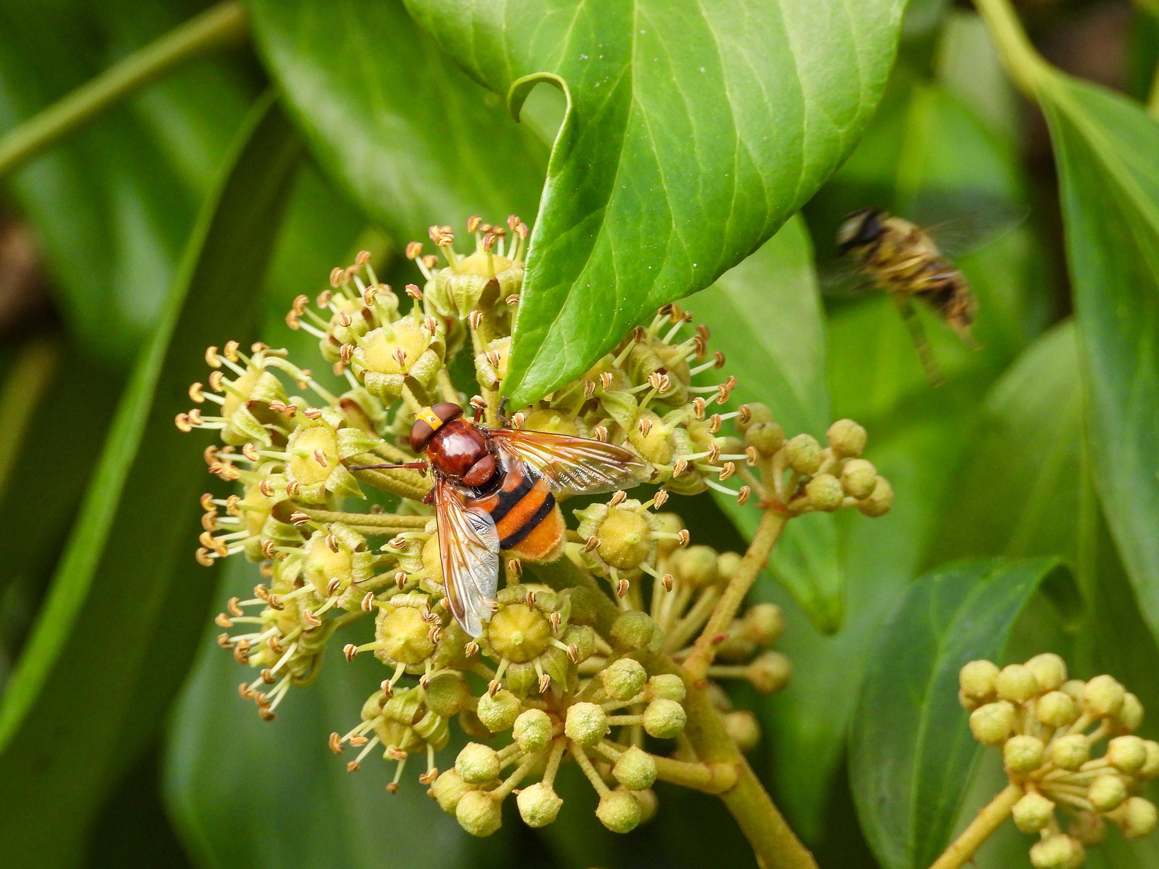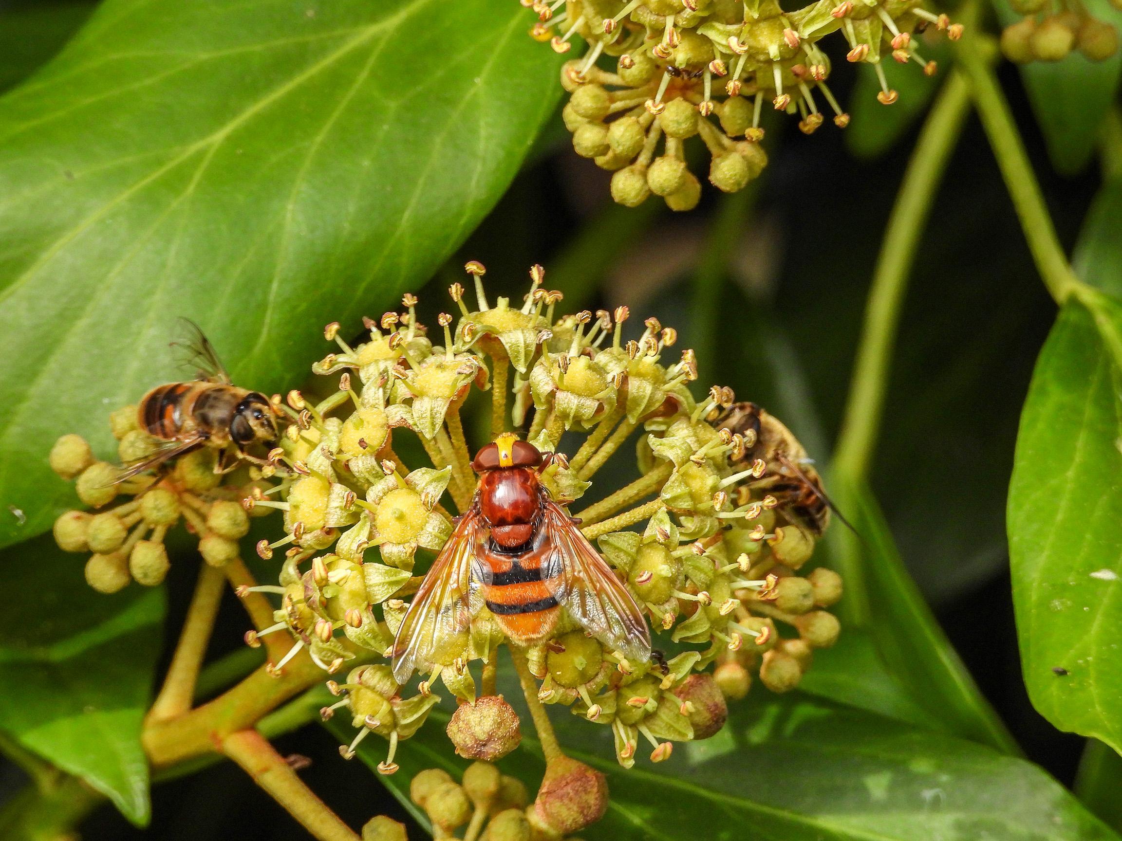And this isn’t a hornet at all, but the hornet mimic hoverfly. It does look and sound a bit like a (European) hornet.