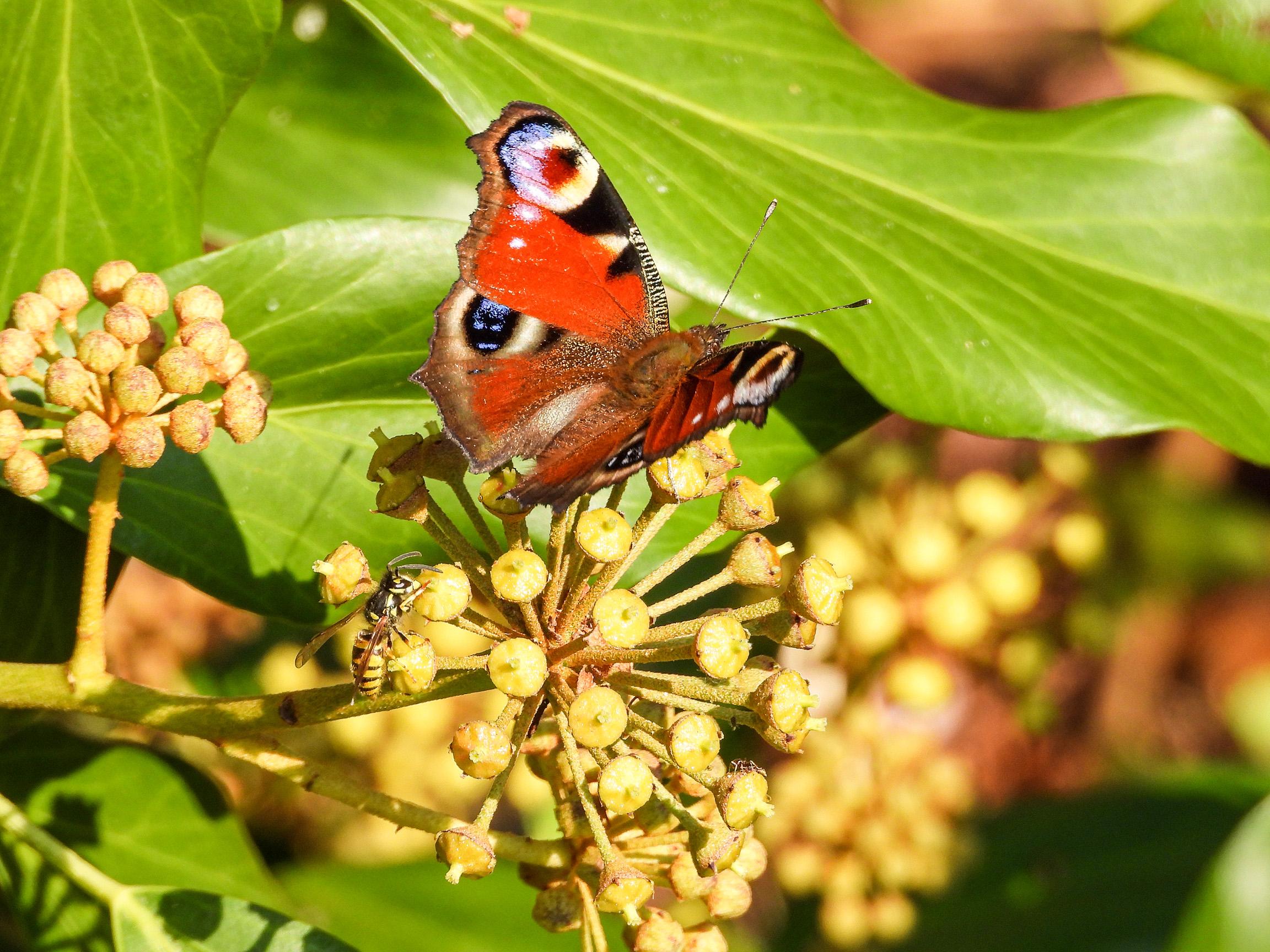 If you want insects in your garden, plant Hedera. Especially late in the season (now) it’s absolutely filled with butterflies, hoverflies, bees and wasps 🥰