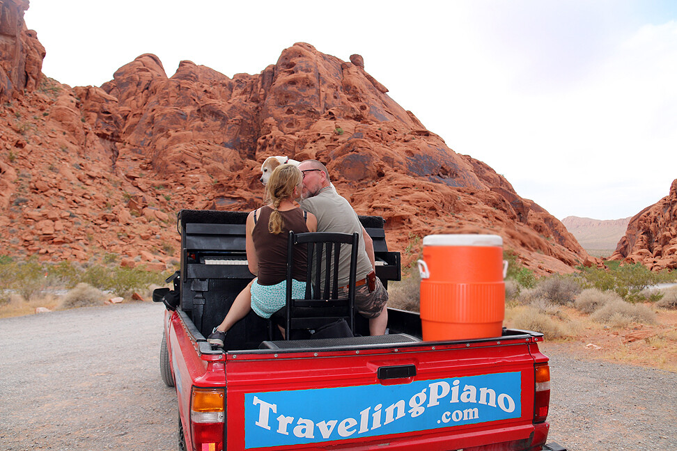 #travelingpiano #couple #kissing #pianoplayer #music #musical #improvisation #fun #friendship #respect #journey #travel #roadtrip #adventure #syncronisity #spontenaiety #empowerment #inspiration #truck #piano#vintage #dogsofinstagram #dog #sharing #photograph #photo #photos #realphoto #realpicture #nevada #nevadascenery #usa #outdoors #nature #valleyoffire #lasvegasstatepark #desert #2023