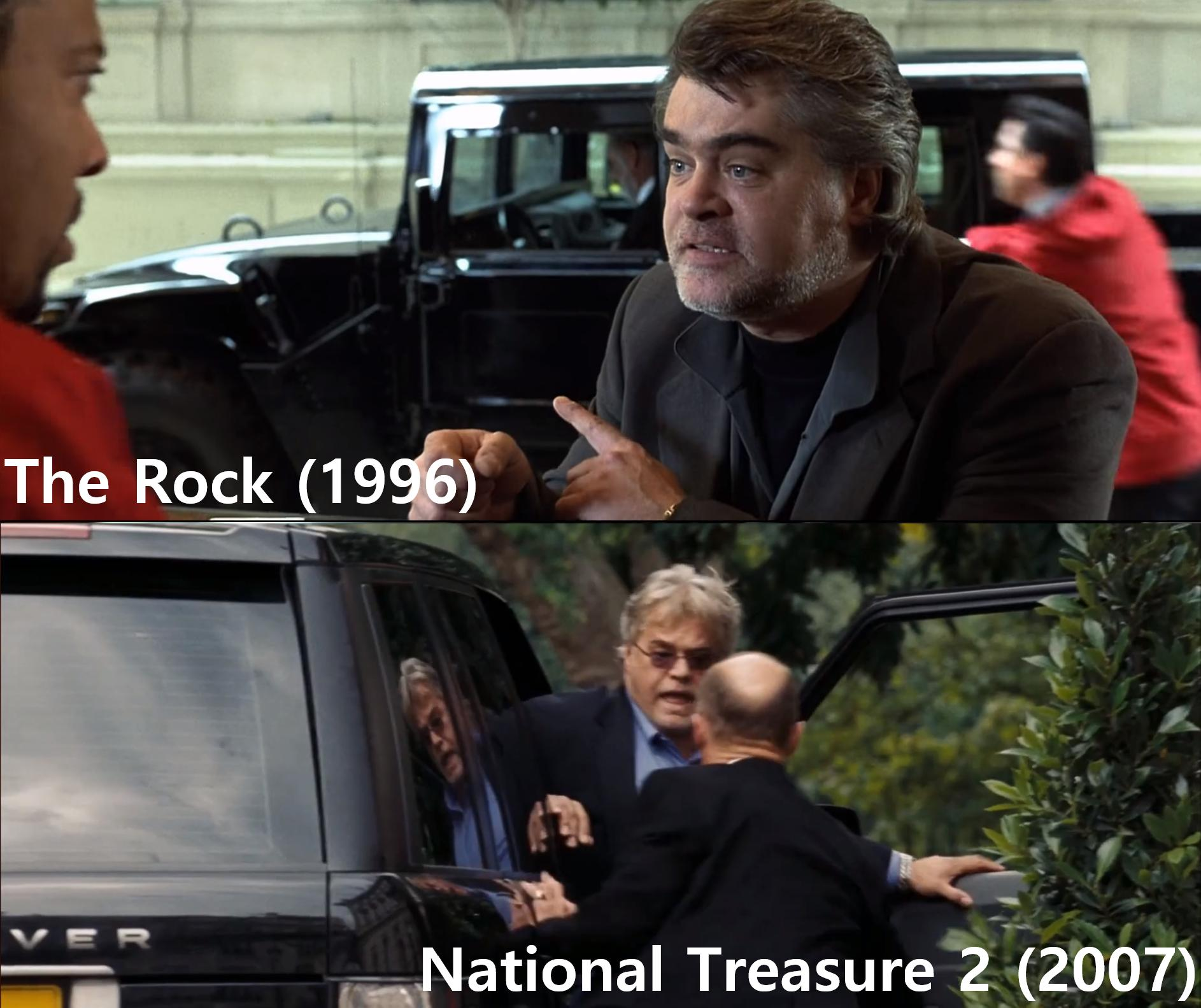 Hans Struhar, a Hollywood costumer, has his Humvee stolen in The Rock and his Range Rover stolen in National Treasure: Book of Secrets. These are his only two acting credits.