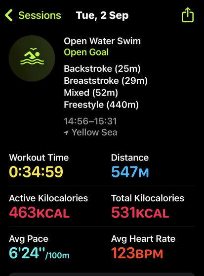 Yay, I made it: The first 1km swim đđââď¸đ in the #NorthSea this year. Water 21°C, weather slightly cloudy, swimming great đ