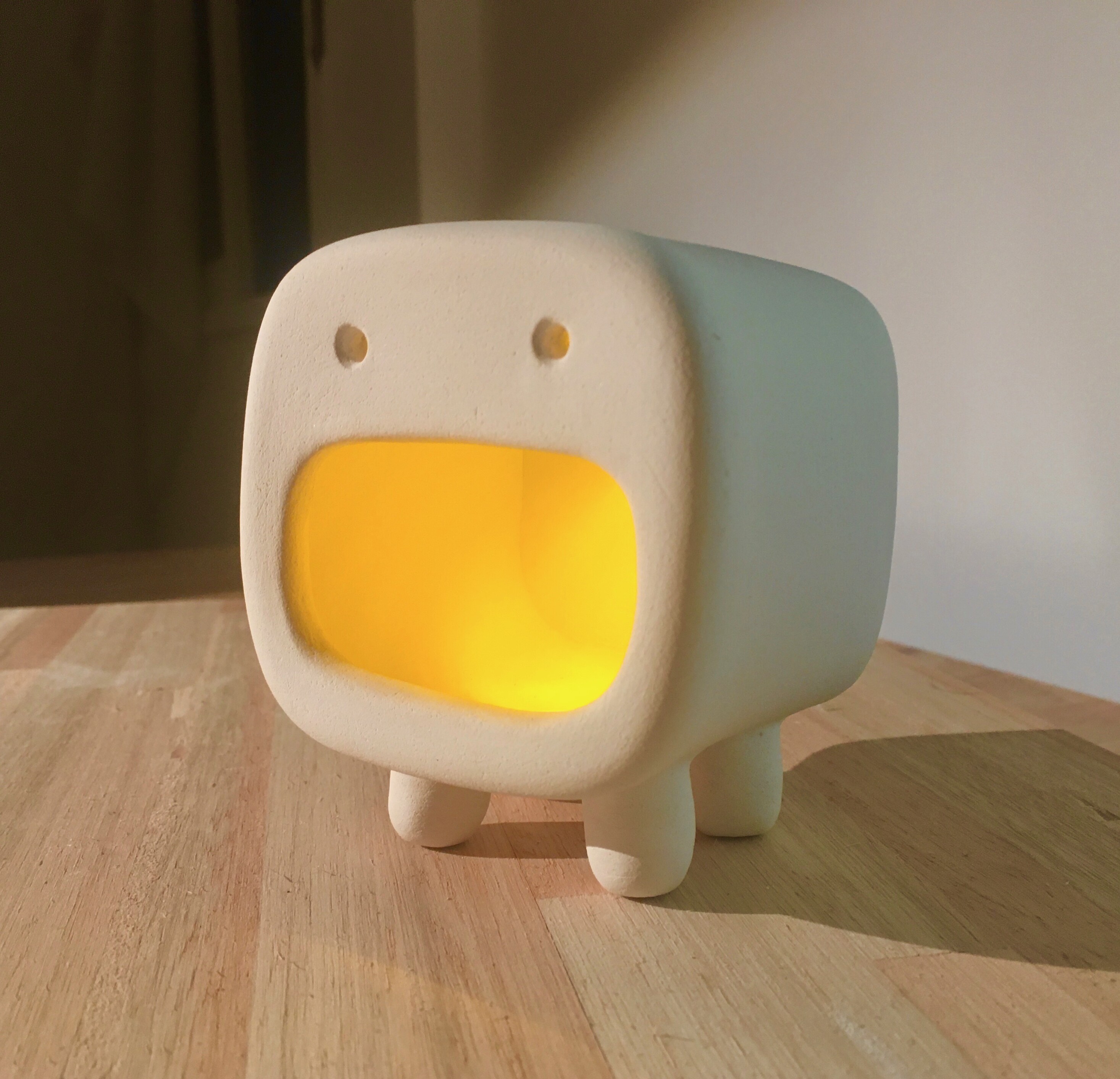 New year, old project. I'm doing some work on this old project I called Opos, which was sleeping for years in a box waiting for its #microcontroller. I'm not sure of the final shape of the project yet, but the idea right now is to make them look like eyes watching you in the dark with a bit of light from behind to delineate the contours. I got a somewhat credible "eye blinking" working, and I'm thinking about adding some #interactivity. #AVR #electronics #ceramics #LED #art #maker #Opos 🧵